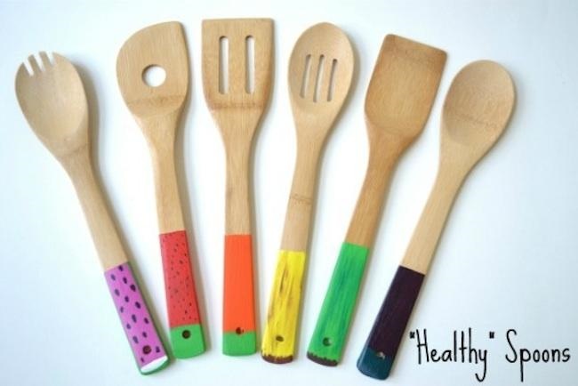 Cucharas de madera pintadas para cocinar con niños