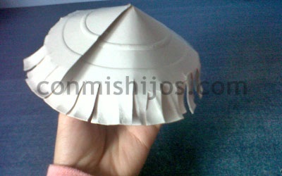 2. Dale al plato una forma cónica y pega los extremos con el celo